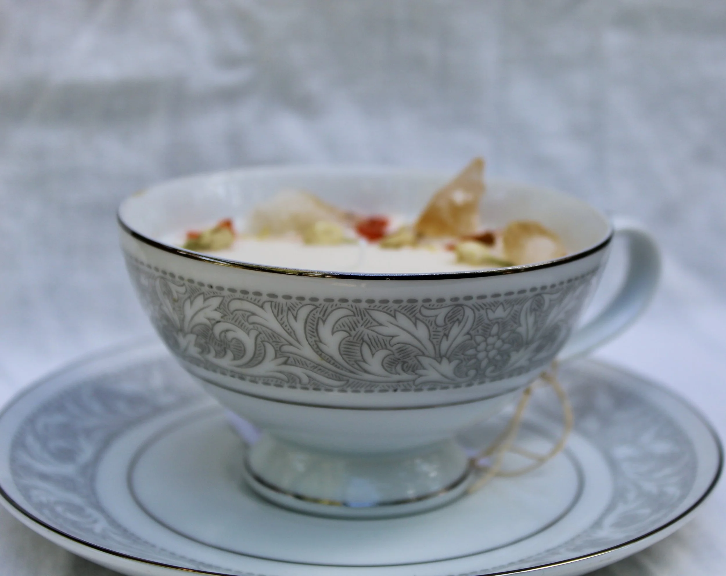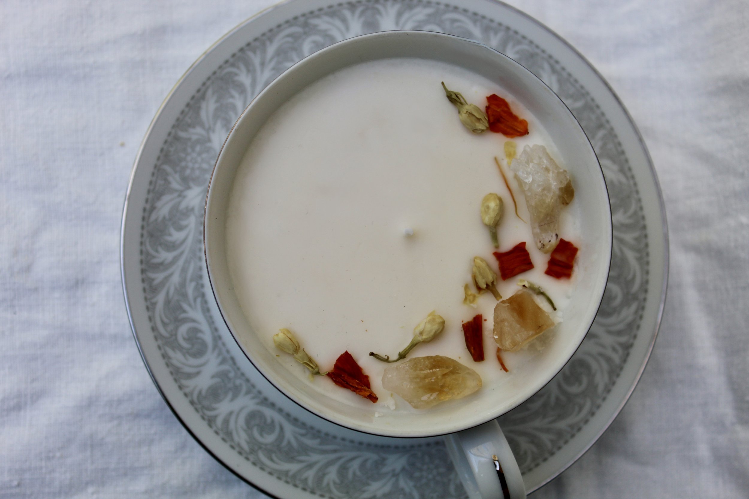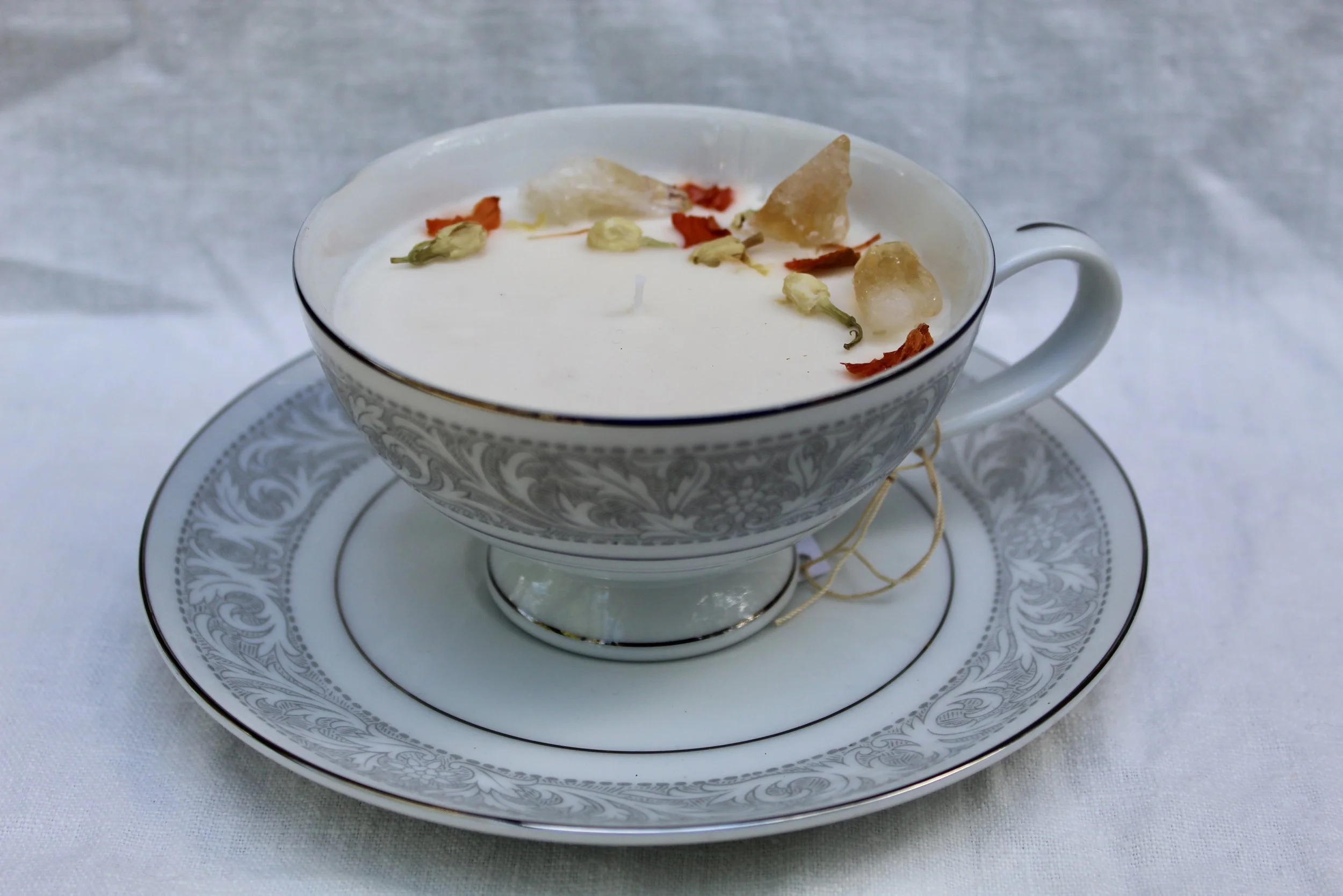 Each Blooming Wicks candle is hand-poured using a creamy soy-coconut wax blend and infused with premium, phthalate-free fragrance oils. We pour them into carefully curated vintage glassware — from delicate teacups to timeless crystal — giving each candle a unique story. Every piece is finished with a touch of dried florals to complement its scent and style, creating a one-of-a-kind experience that’s as beautiful as it is aromatic.
